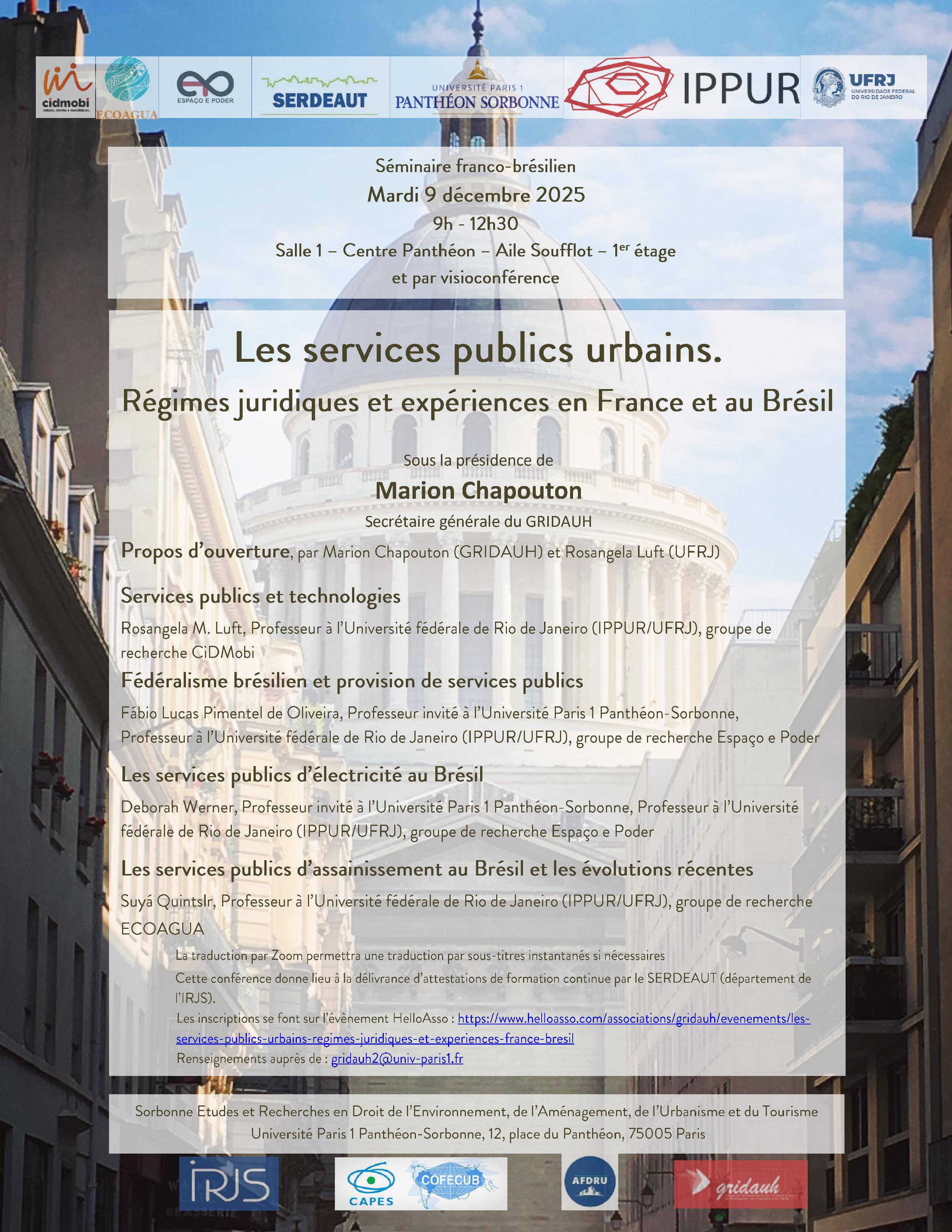 Le séminaire porte sur le thème "Les services publics urbains. Régimes juridiques et expériences en France et au Brésil".