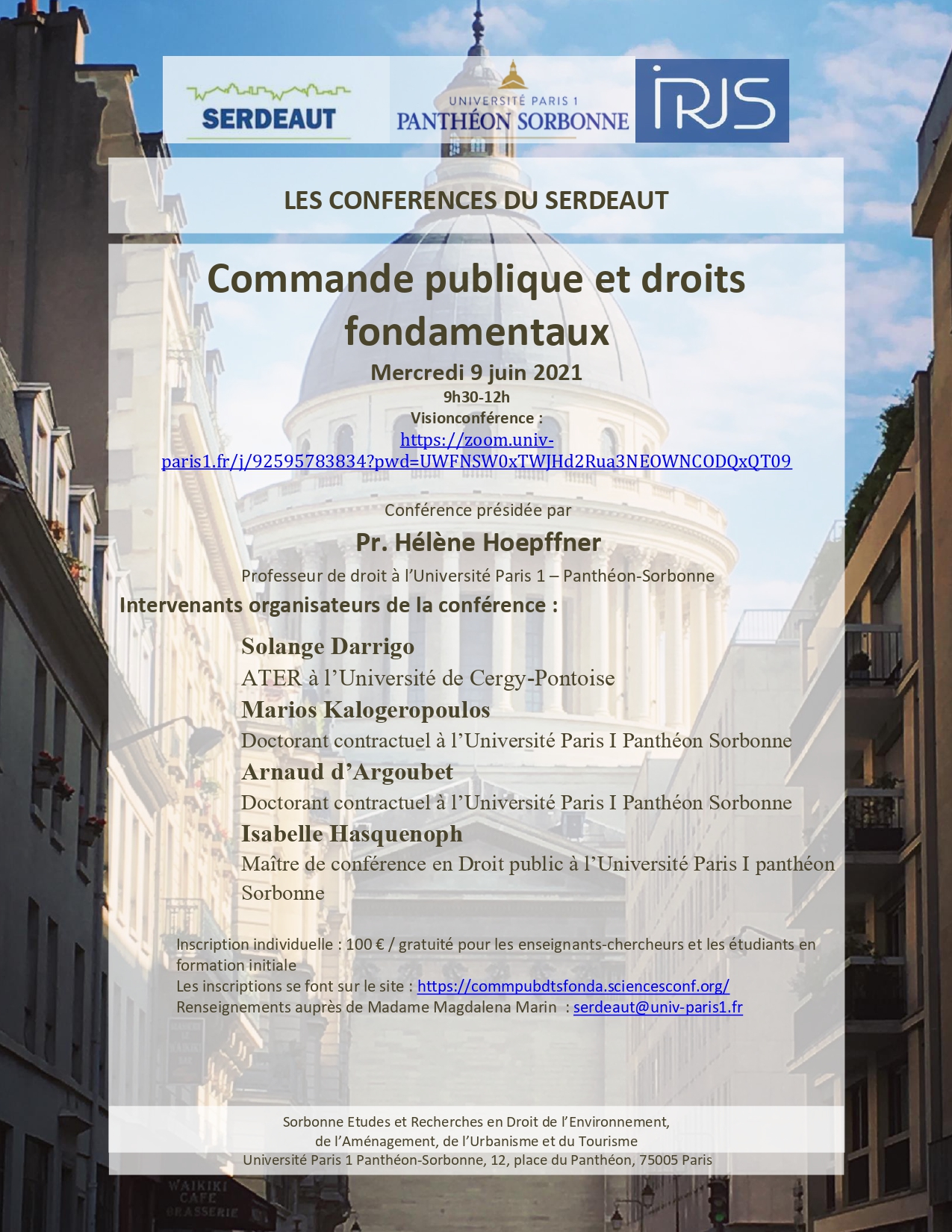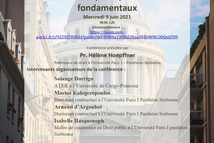 La Conférence sera organisée et animée par Solange Darrigo, ATER à l'Université de Cergy-Pontoise, Marios Kalogeroulos, Doctorant contractuel à l'Université Paris I Panthéon-Sorbonne, Arnaud d'Argoubet, Doctorant contractuel à l'Université Panthéon Sorbonne, et Isabelle Hasquenoph, Maître de conférence en Droit public à l'Université Paris I Panthéon Sorbonne.
