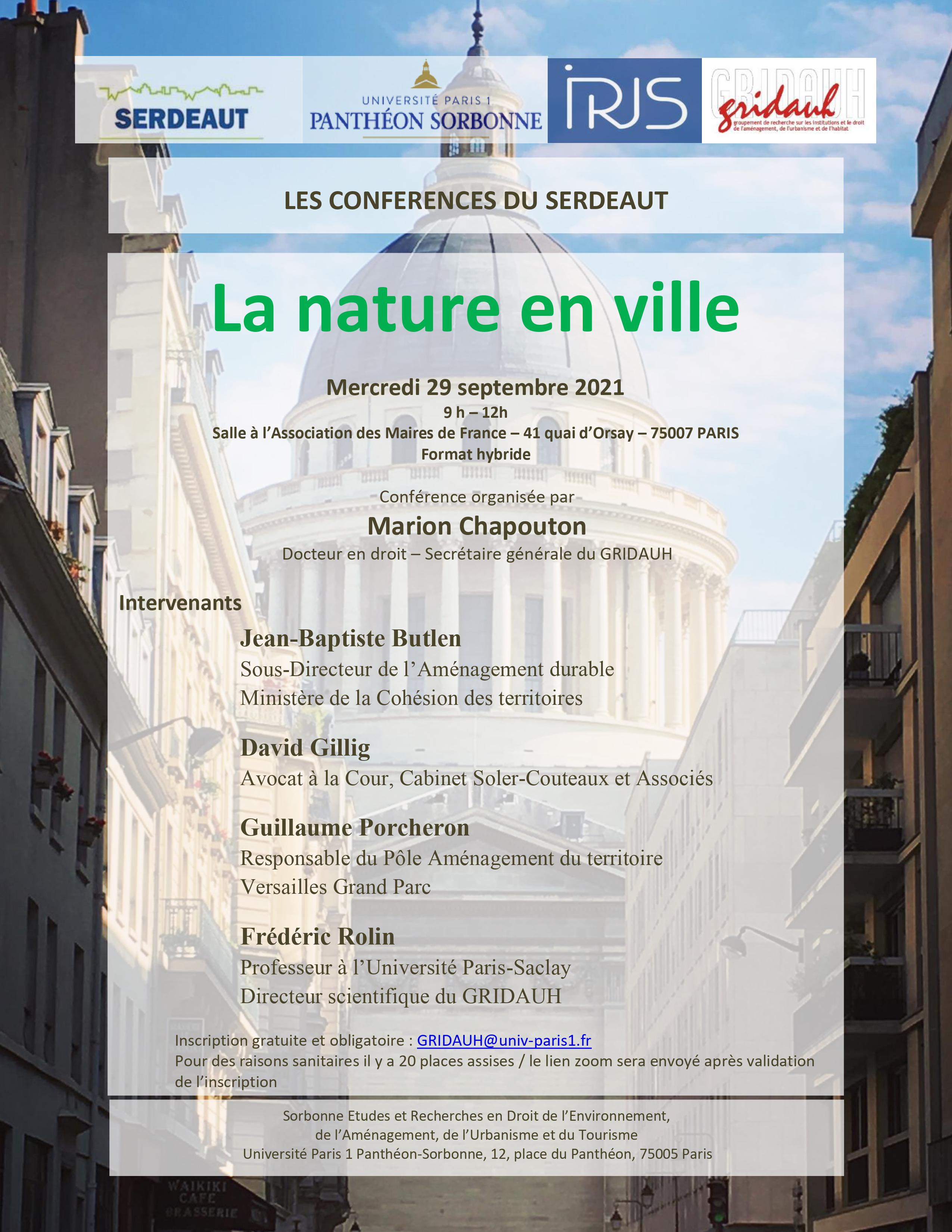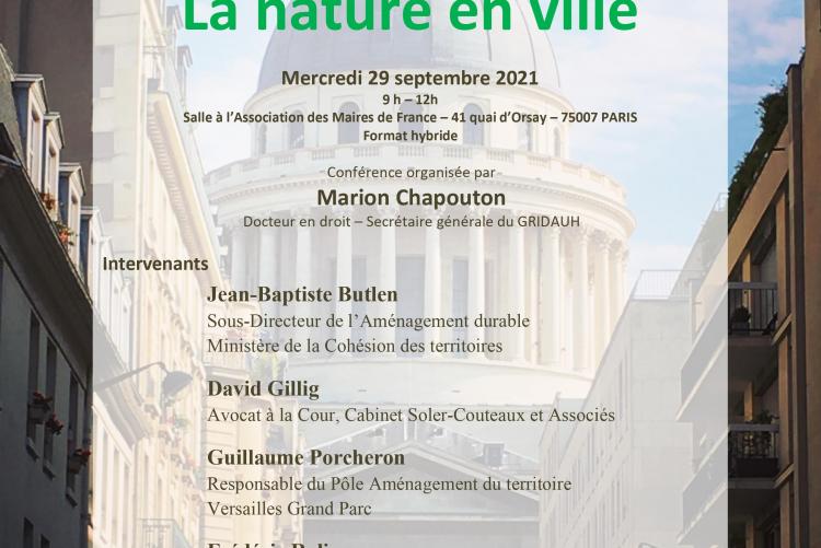 La conférence sera organisée par Marion Chapouton, docteur en droit et Secrétaire générale du GRIDAUH, et animée par Jean-Baptiste Butlen, Sous-directeur de l'Aménagement durable - Ministère de la Cohésion des territoires, David Gillig, Avocat à la Cour - Cabinet Soler-Couteaux et Associés, Guillaume Porcheron, Responsable du pôle aménagement du territoire - Versailles Grand Parc, Frédéric Rolin, Professeur à l'Université Paris Saclay, Directeur scientifique du GRIDAUH.