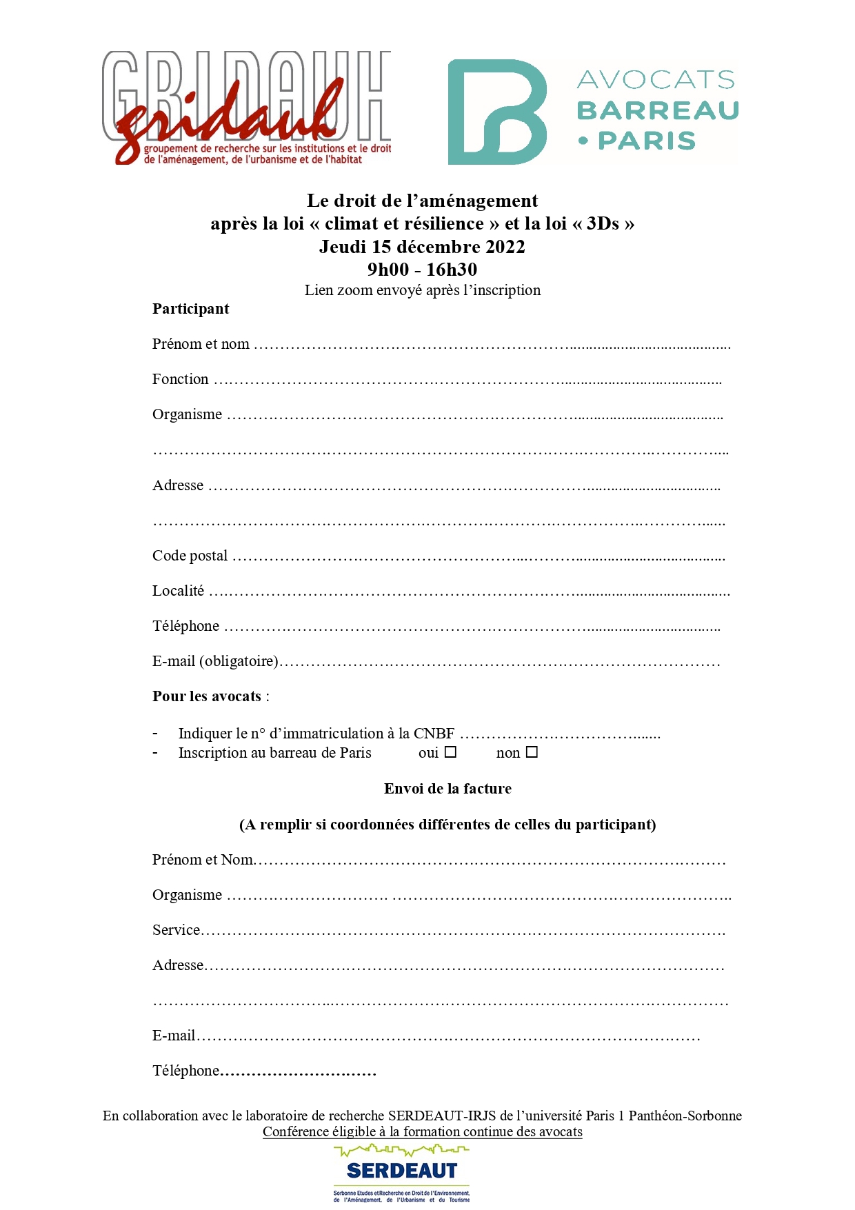 Les demandes d'inscription ainsi que le formulaire d'inscription doivent être adressés au Gridauh avant le 14 décembre 2022.