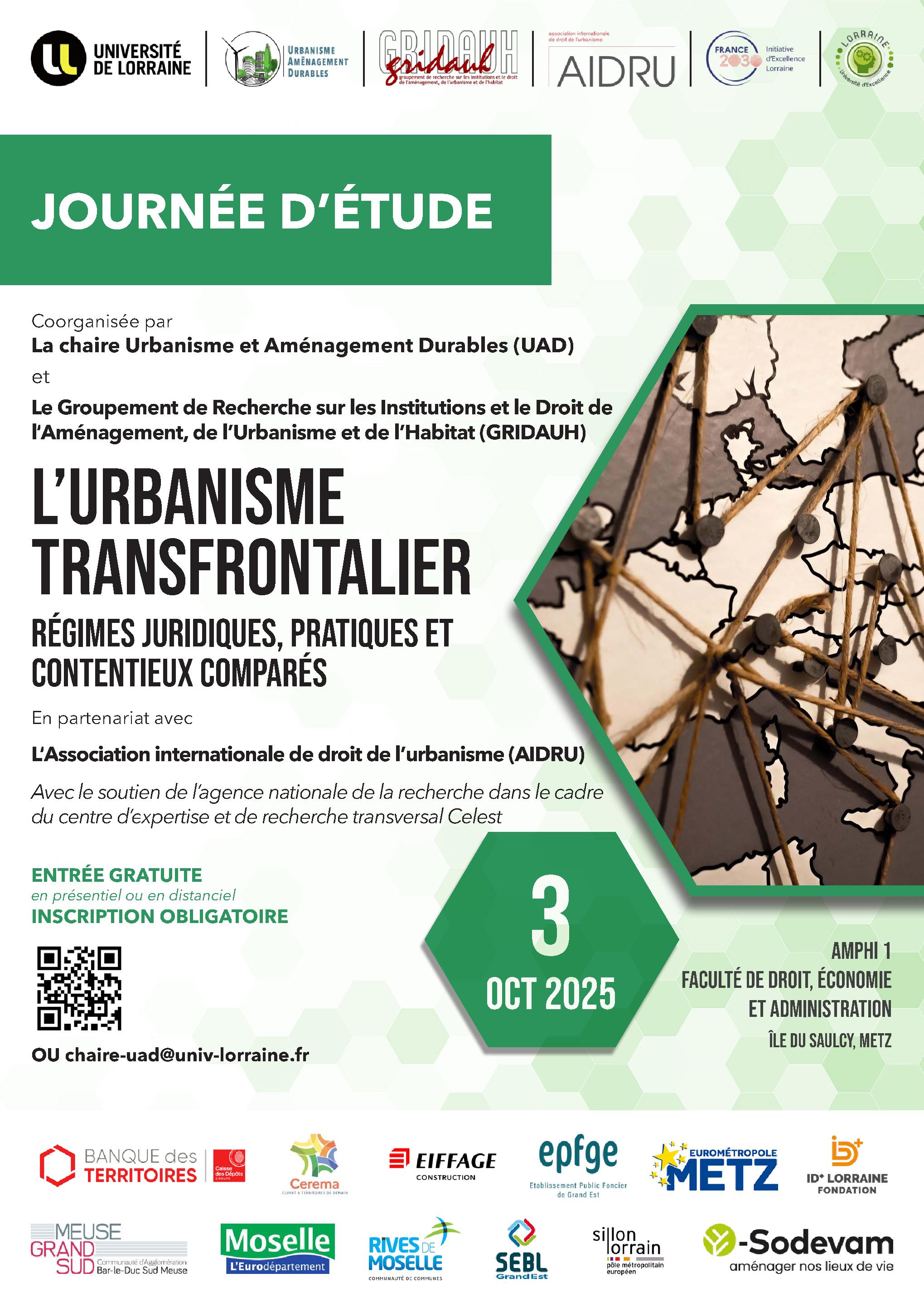 L'inscription préalable est gratuite et obligatoire à : chaire.uad@univ-lorraine.fr