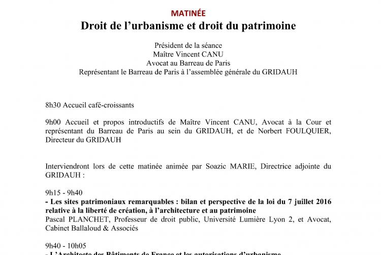 Elle sera consacrée au thème d'actualité : Droit de l'urbanisme et droit du patrimoine