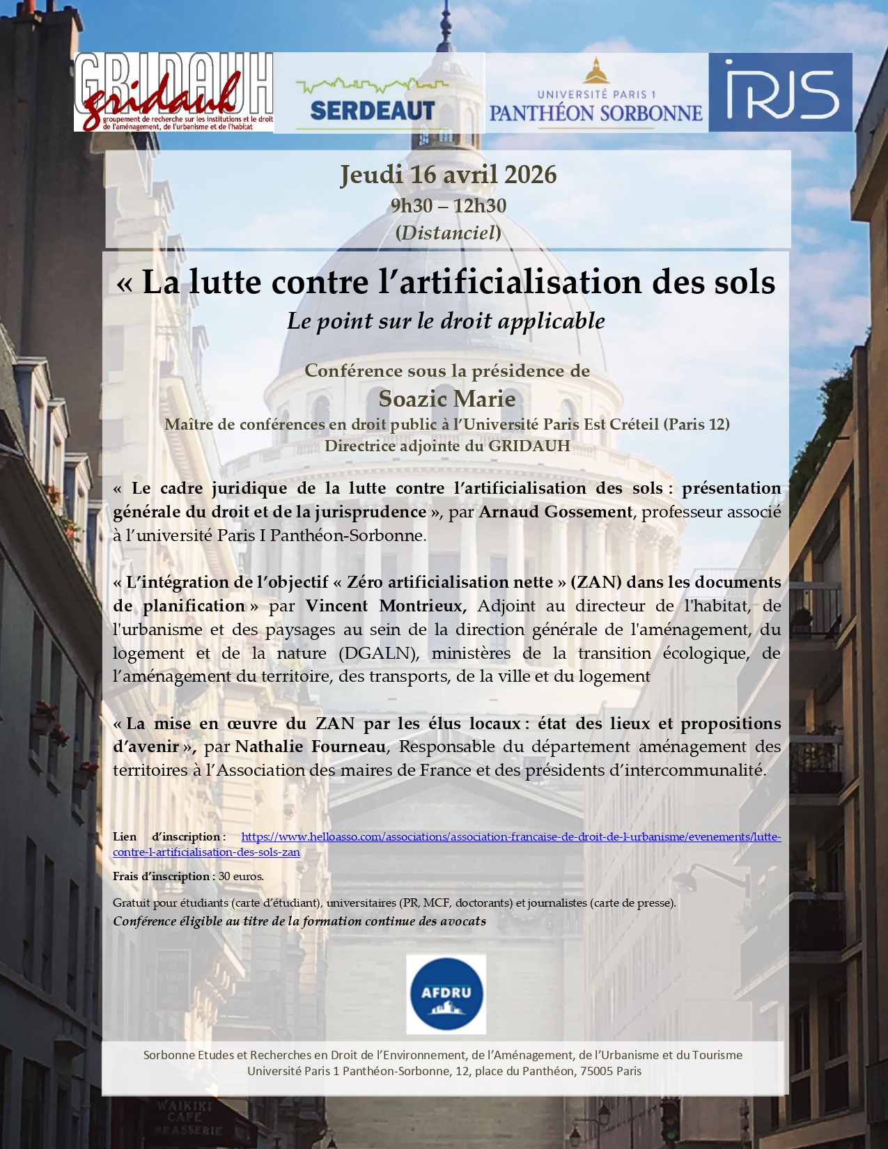 La conférence se tiendra en distanciel le jeudi 16 avril 2026 de 9h30 à 12h30.